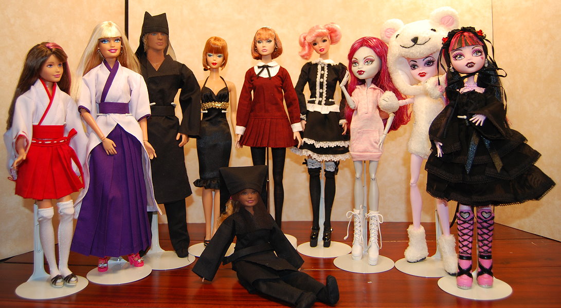 Barbie and Poppy Parker wearing Sophia Mode, Dynamite Girl Sooki wearing Fairies of Darkness